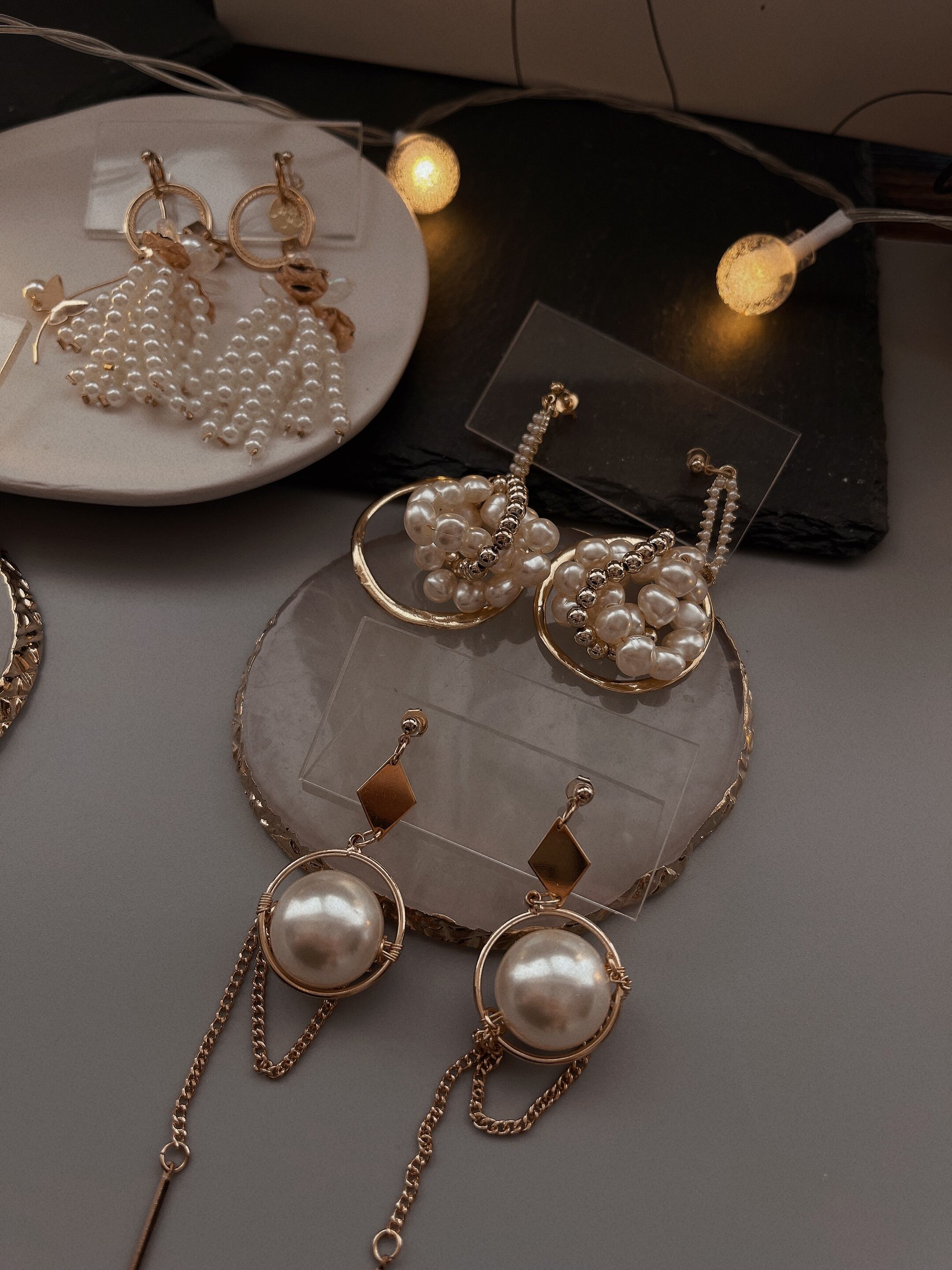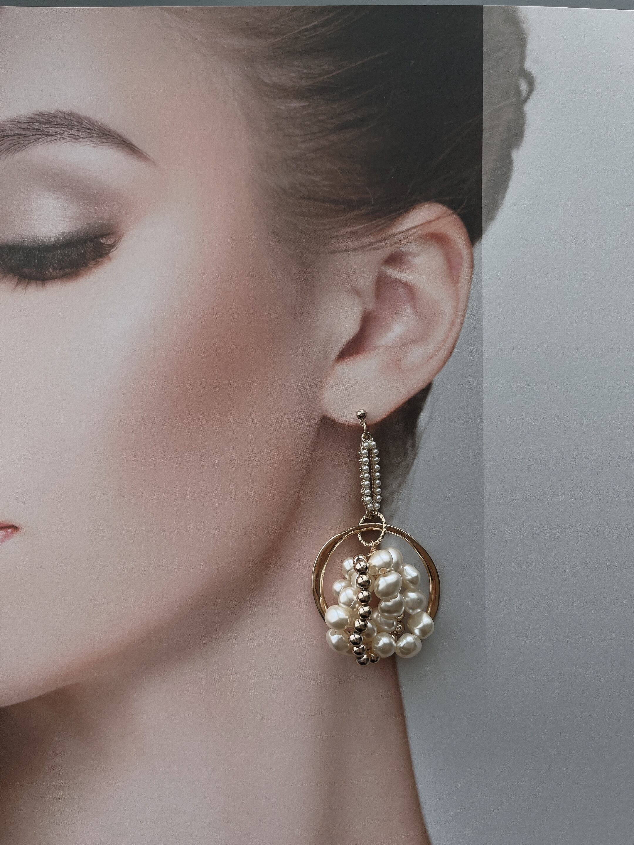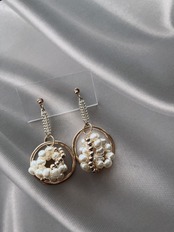 パールとゴールドビーズを編んだ珍しいデザインになります✩.