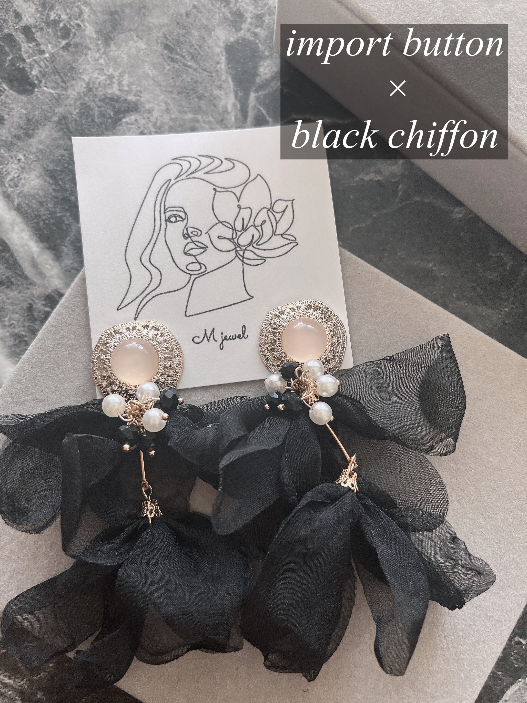 インポートボタンとブラックシフォンを合わせて