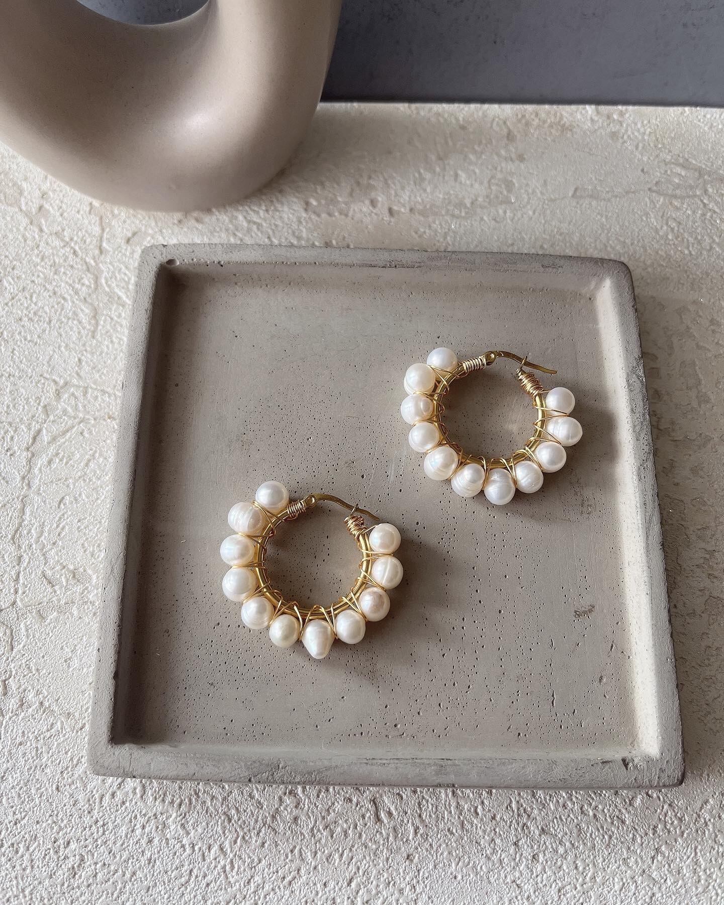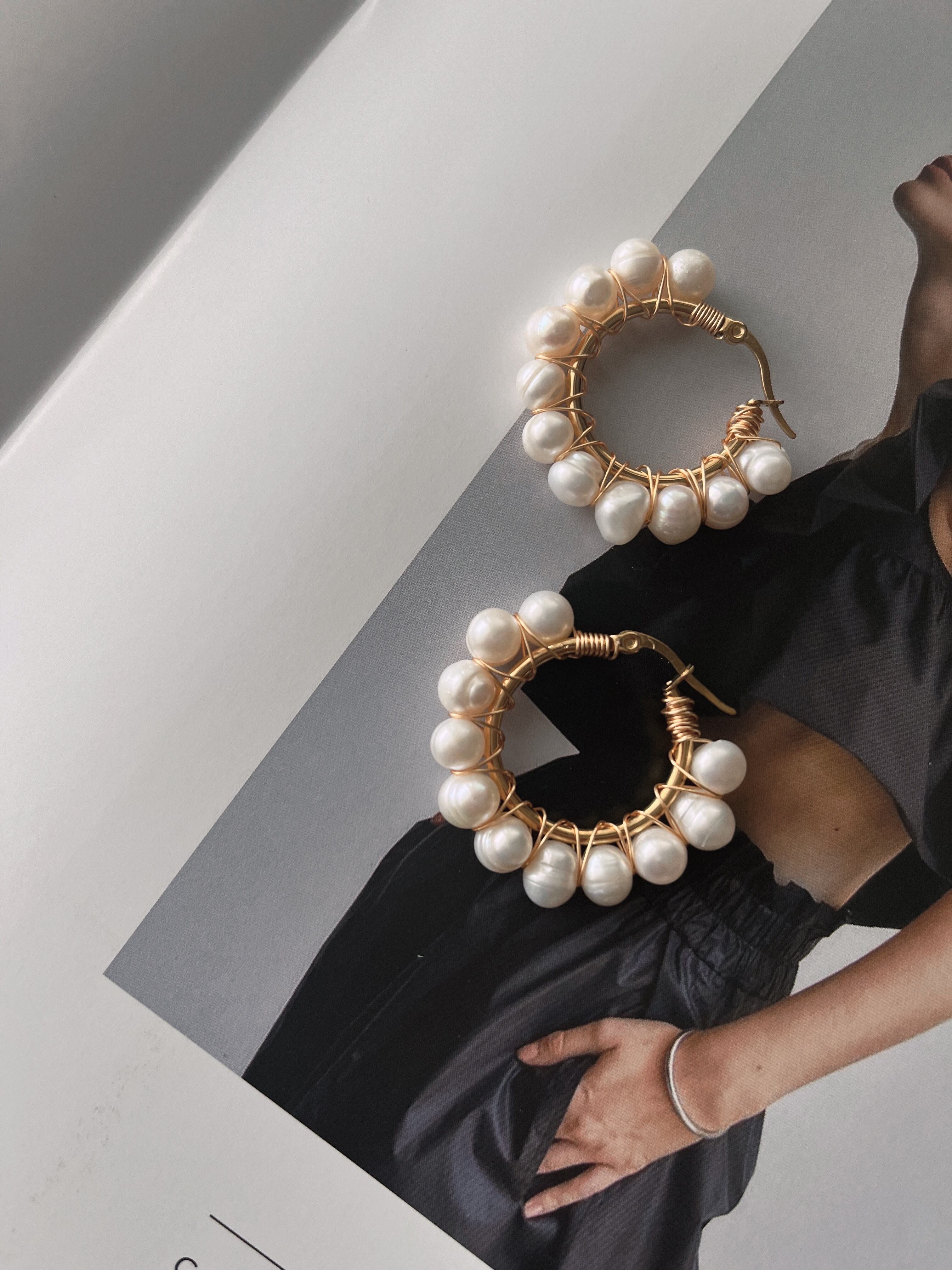 淡水パールをたくさん使ったフープピアスになります